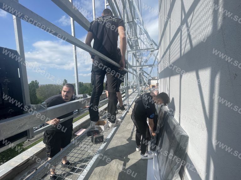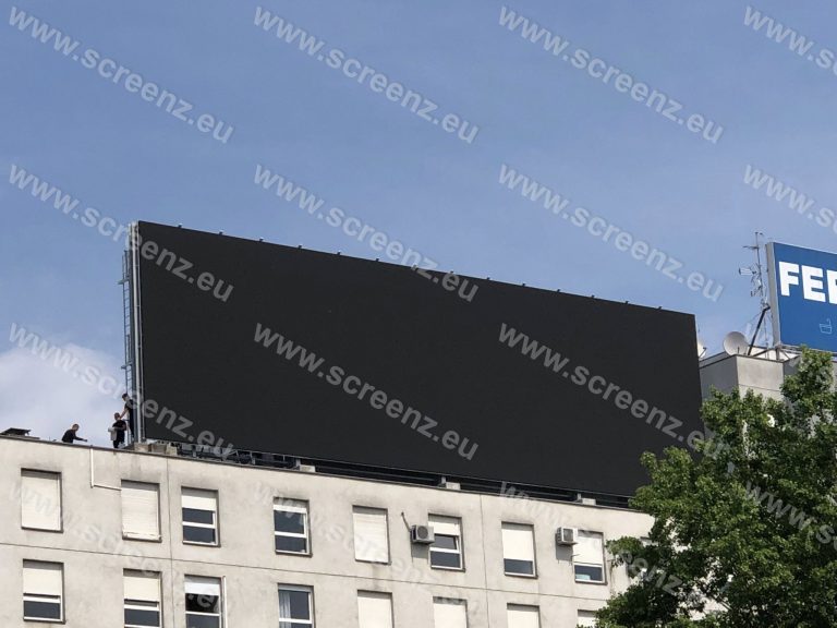 This was one of the biggest projects for our company Screenz and our client Hololab. We need to build a massive outdoor LED screen in one of the best and busiest locations in Zagreb, Croatia. It is a very sensitive client and for this project we need a HIGH-END LED solution with maximum brightness capacity for direct sunlight during a almost the whole day. The whole project took about 7 days to be finalized and installed on top of the building.